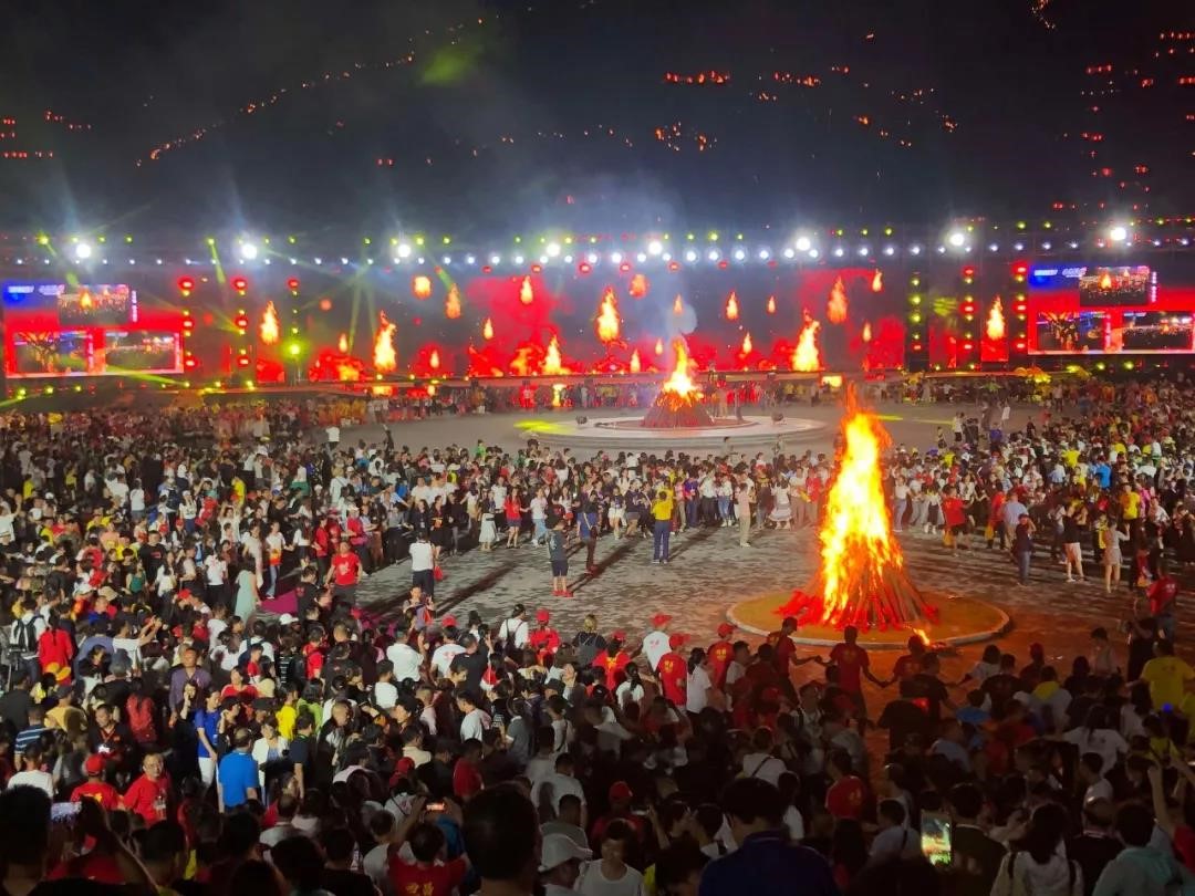 2019中國(guó)西昌·涼山彝族傳統(tǒng)火把節(jié),于7月26日晚隨著夜幕降臨,當(dāng)篝火點(diǎn)燃的一刻,徹夜狂歡的信號(hào)開(kāi)啟?駳g活動(dòng)在西昌市洛古波鄉(xiāng)、大箐鄉(xiāng)、四合鄉(xiāng)三個(gè)地方同時(shí)拉開(kāi)帷幕,據(jù)不完全統(tǒng)計(jì)31.5萬(wàn)人次游客參與了當(dāng)晚火把狂歡。